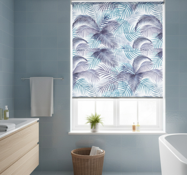 在我们的在线商店购买blind blue的蓝盲椰子与叶子,您将享受到优质的客户服务与100%可定制的测量选项。通过选择三种不同的纹理,您可以完美匹配家居风格。