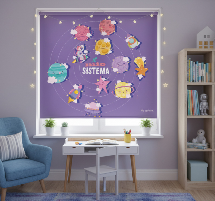 一个充满活力的设计,展示了五彩斑斓的行星和天体元素,包括微笑的月亮和奇幻的星星。一位宇航员骑着火箭穿越宇宙,周围环绕着快乐的行星和顽皮的星星。紫色的背景增强了宇宙主题,为充满星空梦想的冒险者创造了一个迷人的氛围。