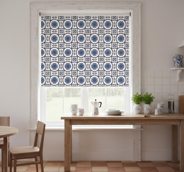 这款厨房盲道蓝色花朵典型葡萄牙瓷砖非常易于安装,您只需点击两次即可轻松组装,适合各种窗户尺寸。它可以根据您的需求进行100%可定制测量,让您轻松选择所需的光量和隐私,完美适应您的厨房环境。
