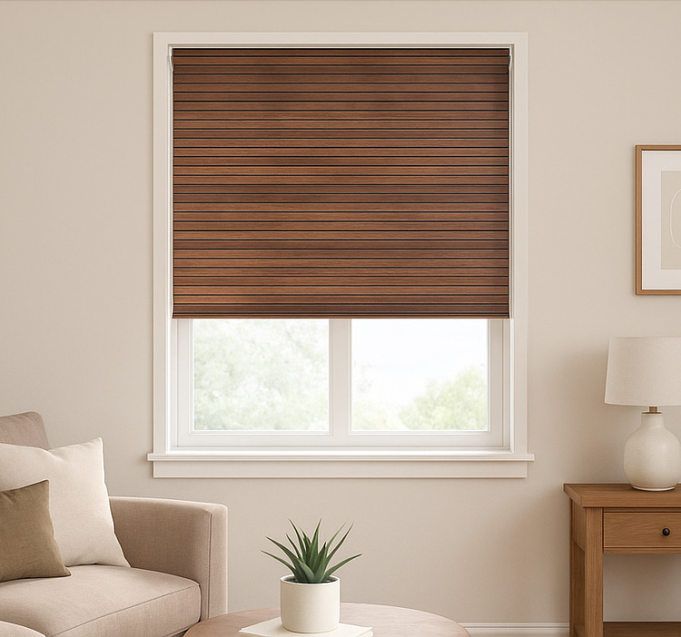 这款设计展现了丰富的木质纹理,具有均匀的水平线条,色调为温暖的棕色。干净现代的美学增强了视觉吸引力,使其适合多种环境。作为一种多功能的选择,它在确保光线控制和隐私的同时,提供了精致的触感。