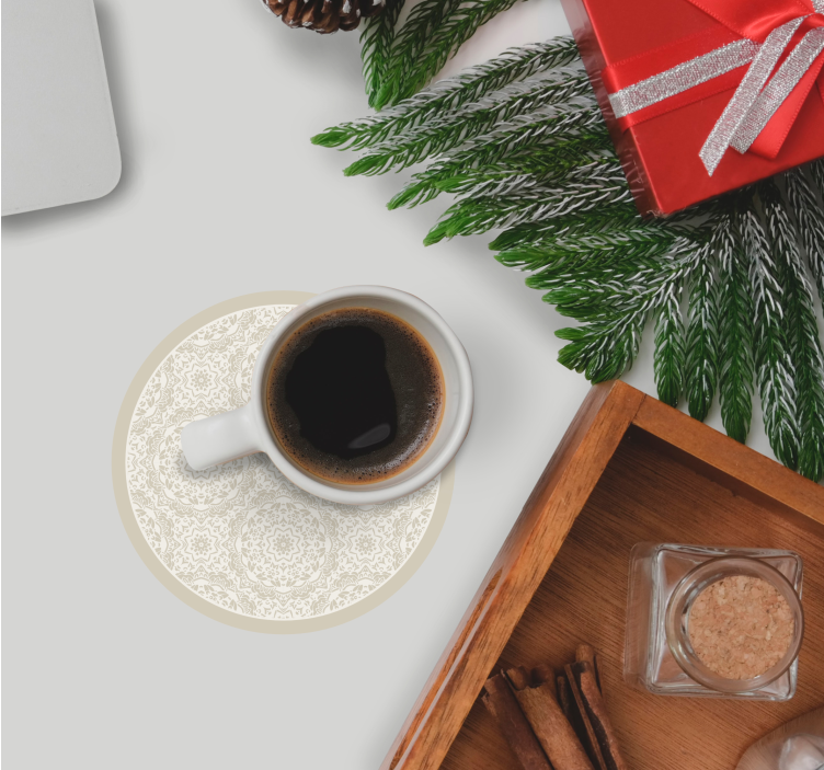 探索这款独特的杯垫纹理精致图案圆形表面,它的设计灵感来自于经典的曼陀罗图案,展现了浅褐色的华丽装饰。每个圆形杯垫都具有精美的对称设计,并采用中性色调,完美融入各种装饰风格,为您的家居增添一丝优雅与质感。