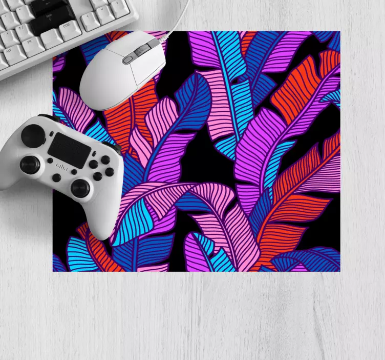 欢迎来到我们的鼠标垫世界!这款鼠标垫模式生动叶子图案以其独特的设计为您带来了热带植物的生机,生动的棕榈树叶和丰富多彩的色块交织在一起,仿佛置身于一个充满活力的热带雨林。每一次使用,您都能感受到那份自然的气息,仿佛手掌轻触着温暖的阳光与清新的空气。