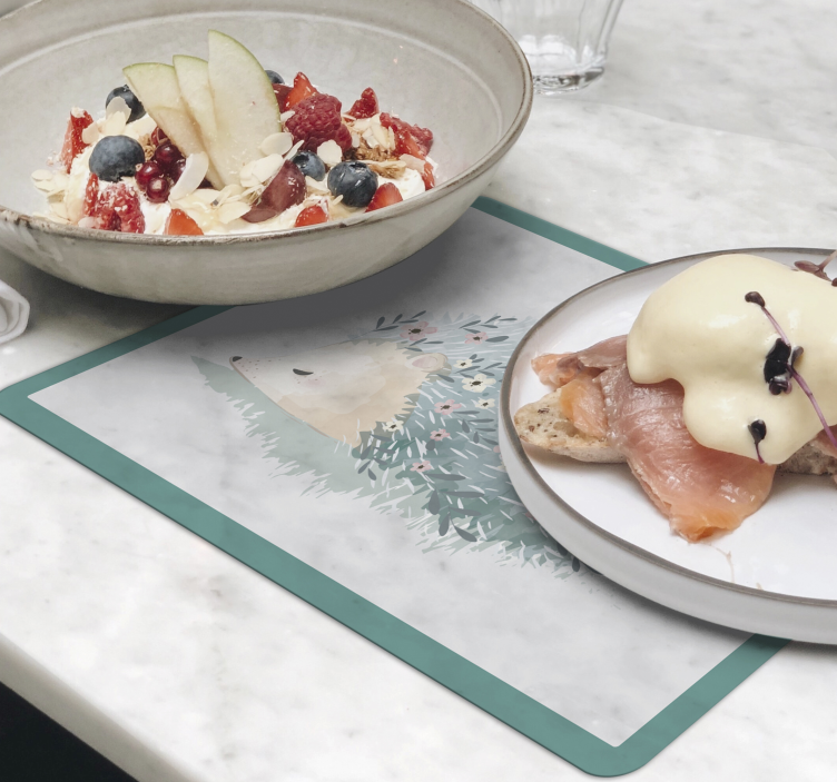 欢迎来到我们的世界,这款乙烯基儿童餐垫可爱刺猬插图将为您的孩子的用餐时光增添一抹色彩!它的设计灵感来源于自然,生动的豪猪和刺猬图案与大理石纹理相结合,形成了一种充满水彩魅力的异想天开的风格。温暖的动物形象和植物群的点缀,不仅吸引孩子的目光,更让他们在用餐时感受到自然的亲切与快乐。