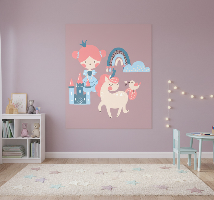 資訊 儿童房的海报:粉彩色独角兽与公主