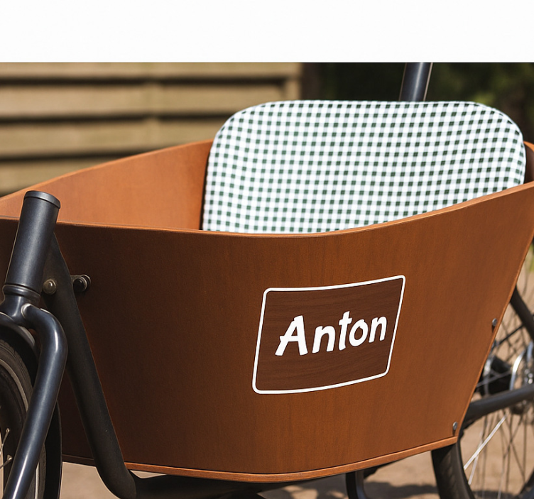 一款时尚的自行车附件,旨在提供实用性和舒适性。配有一个舒适宜人的座位区域,采用棋盘图案,提升家庭骑行体验。显眼的名称增添了个人化的触感,使其成为与小朋友外出时引人注目的配件。