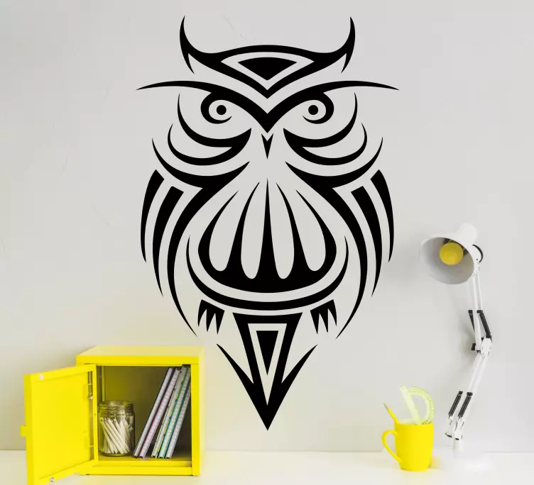 參考:: A48954一只引人注目的风格化猫头鹰,具有复杂的线条和大胆的形状。这个设计为任何空间增添了一种自然元素,完美地将优雅与现代美学融合在一起。猫头鹰象征着智慧和神秘,是寻求灵感和个性的人士的理想选择。