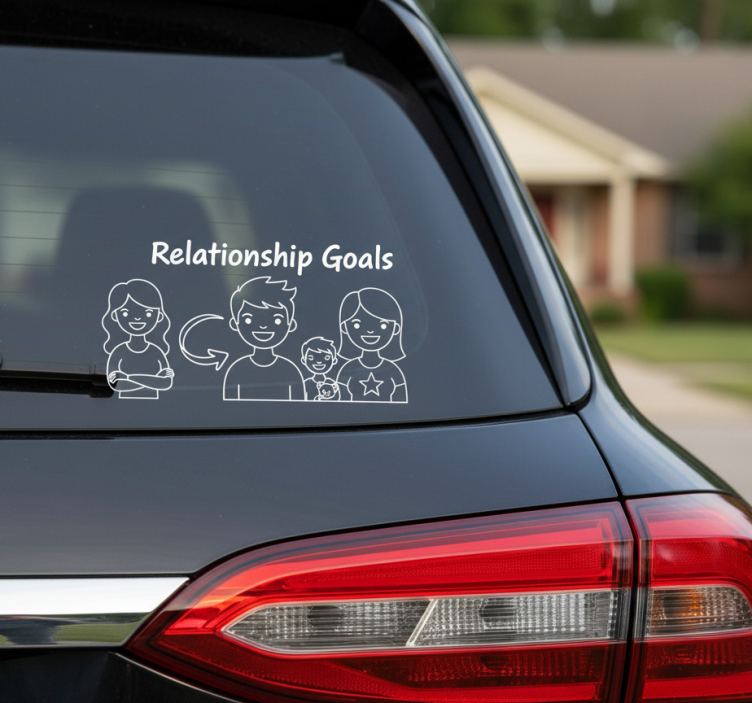 这幅设计展示了温馨的家庭联系,描绘了三个微笑的角色,传达出团结和快乐的感觉。短语 'Relationship Goals' 强调了支持和爱的关系的重要性,突显了对健康家庭动态的向往。