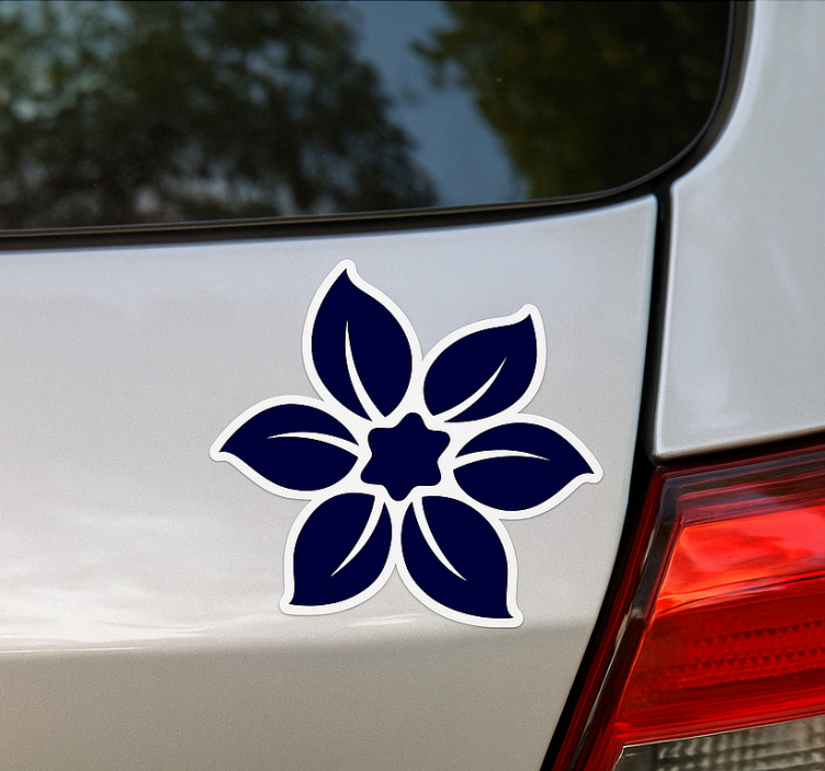 一个优雅的花卉设计,展现出从中心星形辐射出的光滑、对称的花瓣。这个图案体现了美与自然的感觉,使其成为车辆美学的深思熟虑的补充。适合个性化,呼应着成长与和谐的主题。