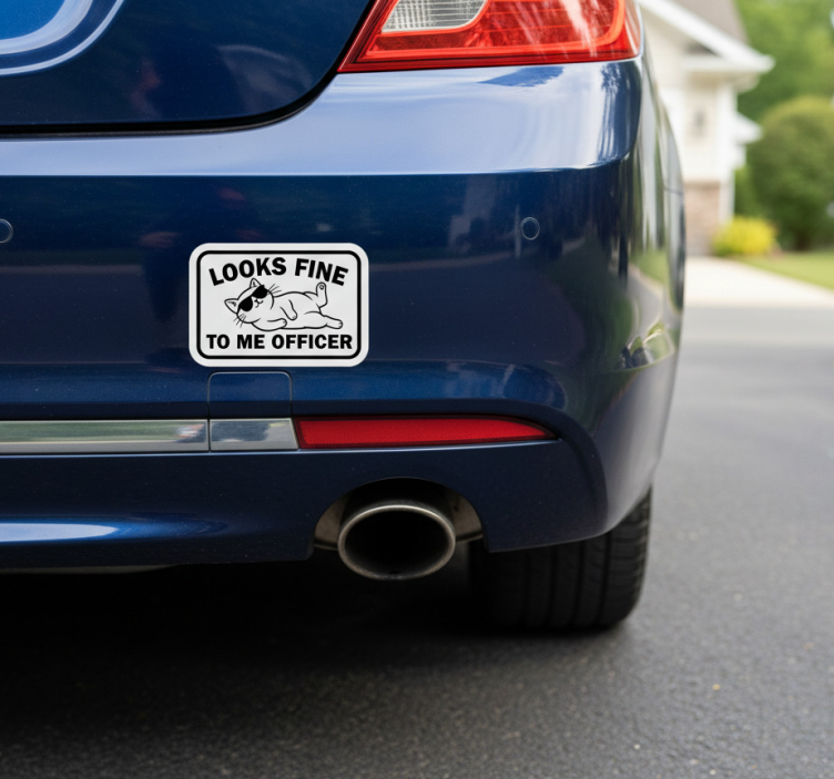 一个有趣的设计,展示了一只戴着太阳镜的放松猫咪,为任何车辆增添了幽默感。短语 "LOOKS FINE TO ME OFFICER" 暗示了一种无忧无虑的态度,通常与轻松的叛逆精神相关联。这个设计非常适合那些欣赏个性幽默表达的人。