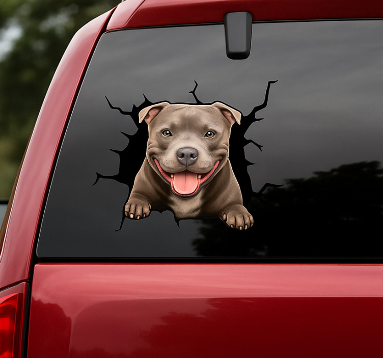 一幅生动的描绘,展现了一只友好的狗从裂缝中冲出来,充满了快乐和玩耍的气息。这个设计强调了狗的表情特征,散发着温暖和魅力,使其成为任何空间或车辆的愉快补充。它捕捉到了忠诚和陪伴的精髓。