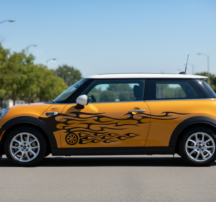 一辆充满活力的车辆拥有引人注目的火焰设计,传达出速度和兴奋感。动态的图案增添了运动感,使这辆车在任何环境中都显得格外突出。该设计适合个性化定制,可以在增强车辆整体美感的同时,增添个人风格。