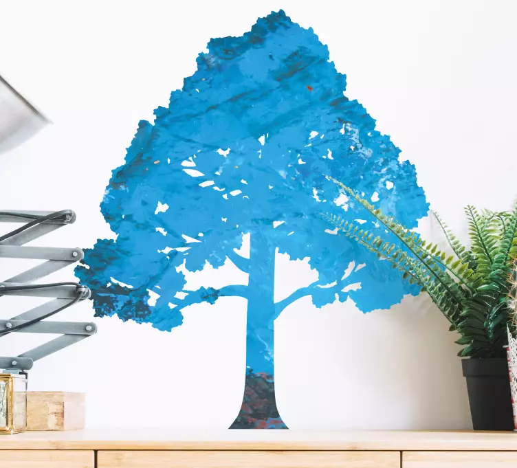 參考:: A48608一幅引人注目的蓝色树叶树的描绘,为任何空间增添了生机勃勃的色彩。它错综复杂的枝干和叶子营造出一种宁静的感觉,邀请人们与自然连接,提升整体氛围。