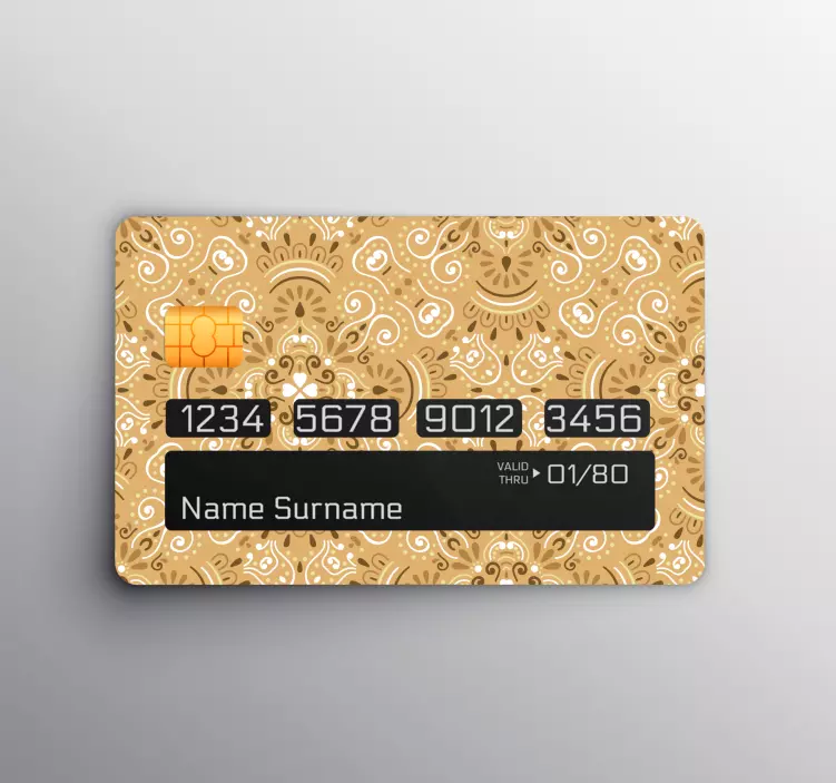 我们的信用卡贴纸精美卡片图案是一款华丽而优雅的装饰性产品,设计灵感源自浅褐色的装饰图案,旨在为您的信用卡增添独特的风格。每一款贴纸都展现出精致的细节,能够让您的信用卡在众多卡片中脱颖而出!