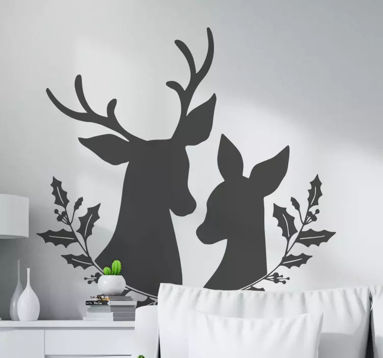 这款动物贴画艺术化鹿形象将自然的美融入到家居装饰中,设计灵感源于优雅的鹿,四周环绕着生机勃勃的树叶,形成独特的轮廓。它展现了动物在自然中的和谐,搭配桂冠的元素,传递出一种宁静与优雅的氛围,仿佛让您置身于冬青的森林之中。