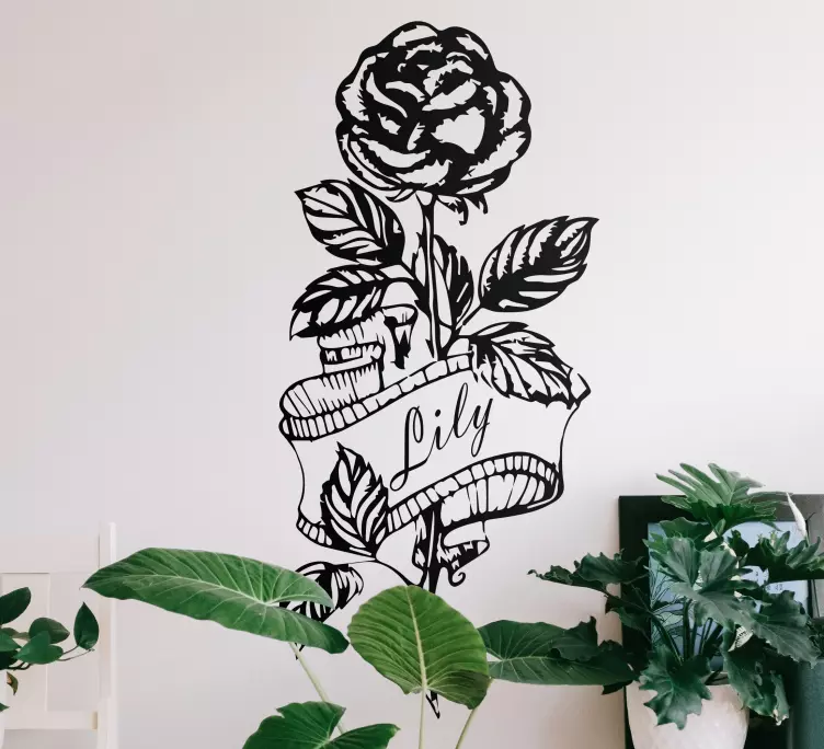 參考:: A48263这件优雅的作品展现了精美的玫瑰图案,搭配着一条流畅的横幅。鲜明的黑白对比增添了其高雅感,使其成为任何空间的绝佳装饰,完美地表达了美丽与魅力。