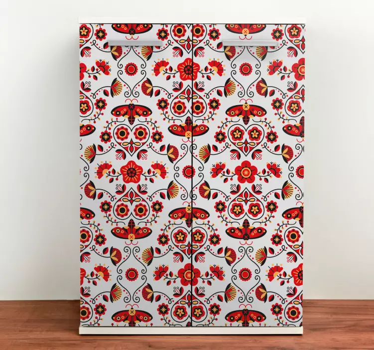 欢迎来到我们的冰箱贴纸植物图案艺术作品世界!这款设计灵感来源于自然,融合了民间艺术的元素,展现了蝴蝶翩翩起舞的美丽场景,伴随着丰富多彩的花朵图案。每一片贴纸都如同一件华丽的艺术作品,为您的家居增添了充满活力的氛围,让您的空间焕然一新!