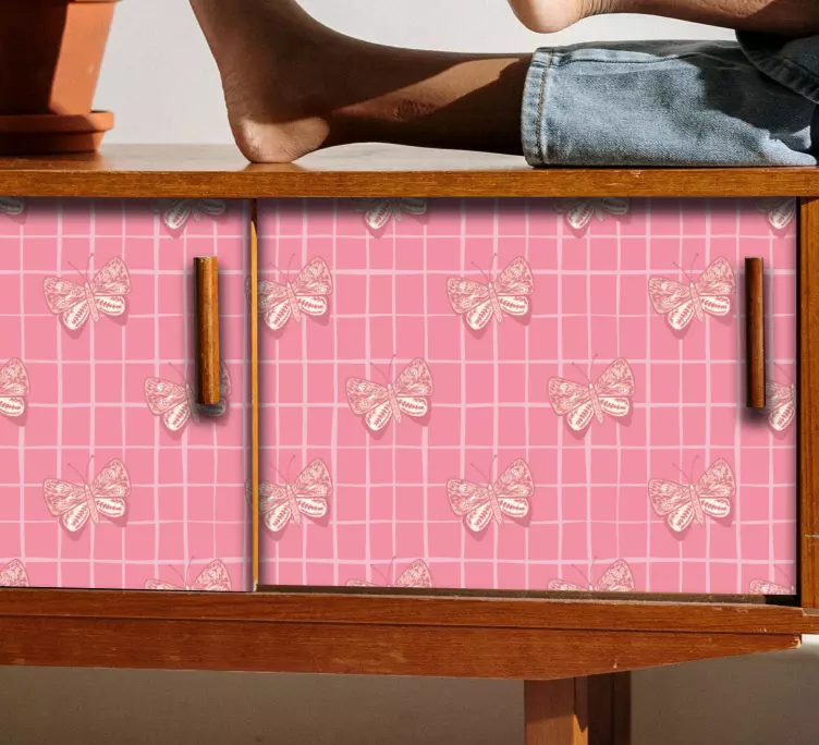 參考:: A49313一个迷人的设计,背景是粉色格子,上面点缀着细腻的蝴蝶。这个生动的图案增添了俏皮的气息,使其非常适合为任何空间增添亮丽,同时体现了通过自然展现的转变与美丽主题。