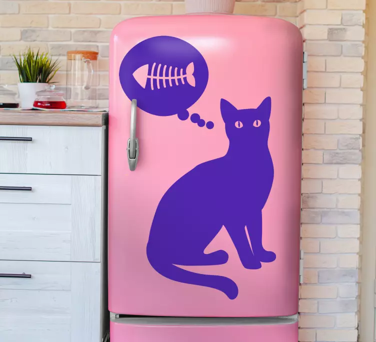 欢迎您的厨房迎接一只可爱的猫咪剪影!这款冰箱贴纸温馨猫咪剪影设计灵感源自于猫咪的灵动思维,结合了有趣的想法泡泡和鱼骨的轮廓,展现了一个充满趣味的宠物世界。每一只猫咪都似乎在思考,心中想象着美味的鱼,给您的厨房增添了一抹温馨而幽默的气息。