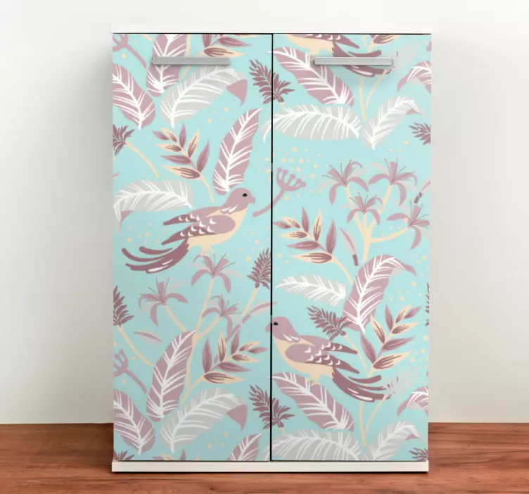 欢迎来到我们的家具贴纸植物鸟类徽章系列!这款独特的产品设计以鸟类、鹦鹉和热带树叶为灵感,展现出异国情调的自然美感。它的柔和色彩完美融入植物群和动物群的图案,为您的家具增添了一抹生动的自然装饰,仿佛置身于热带森林之中。