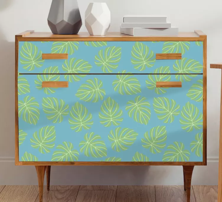 我们的家具贴纸叶子图案覆盖设计以热带树叶为灵感,展现出令人愉悦的自然之美。蓝色和绿色的搭配营造出清新而生动的氛围,仿佛把大自然的气息带入您的家居空间。这款装饰性的家具贴纸让每一块家具焕然一新,给您的家增添了独特的视觉享受!