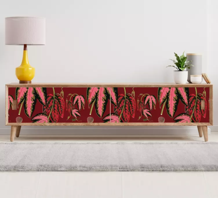我们的家具贴纸采用了生动的繁茂叶子图案,灵感源自自然界中丰富的植物群。设计中融入了马兰塔的优雅与花卉的绚丽,色彩上使用了充满活力的红色、绿色和粉色,让每个角落都散发出自然的气息。这款家具贴纸不仅仅是一种装饰,更是为您的家居空间增添了一份生机与活力。