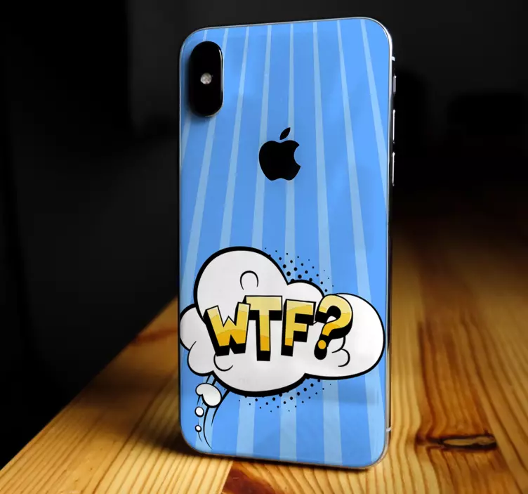 參考:: A48535一个充满活力的设计展示了一个带有文本 'WTF?' 的思维气泡。俏皮的排版在浅蓝色背景上格外醒目,背景上装饰着竖条纹,营造出现代美感,能够增强个人表达。