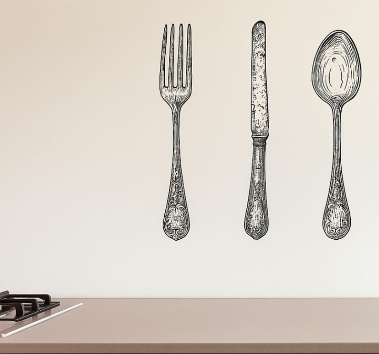 选择在我们的在线商店购买厨房贴纸灰色餐具,您将享受到专为特定表面设计的优质产品。我们承诺每个墙贴花均采用优质材料生产,确保耐用性和色彩的持久性。更重要的是,您可以根据自己的需求定制尺寸,完美契合您的厨房空间!