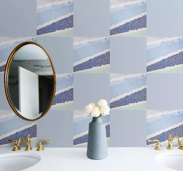 欢迎来到我们的放置贴纸抽象图案马赛克产品介绍!这款独特的墙贴花采用了美丽的蓝色调,结合了瓦片和瓷砖的设计元素,形成了一种引人注目的马赛克效果。其细腻的纹理设计与几何形状的完美结合,不仅让您的内饰风格焕然一新,还能为您的空间增添波浪般的动感。