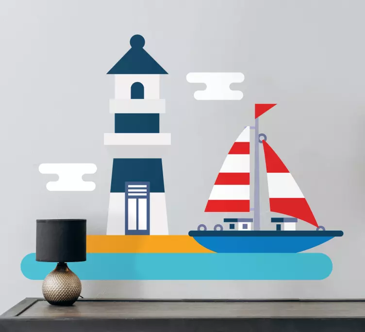 放置贴纸灯塔与帆船的迷人设计