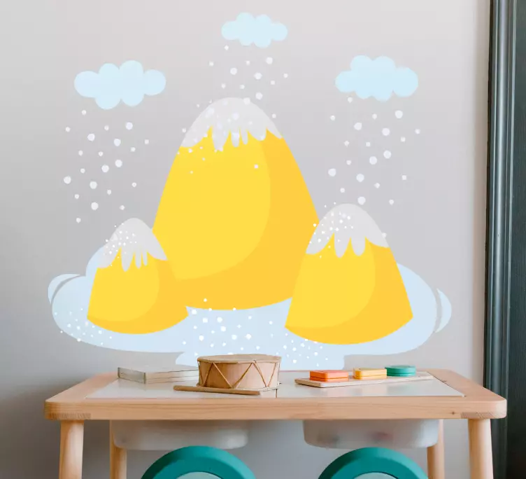 參考:: A49203一幅生动的山峰图景,白雪皑皑,背景是柔和的云朵。这幅插图传达出宁静与活泼的感觉,非常适合为任何空间增添亮丽的色彩。