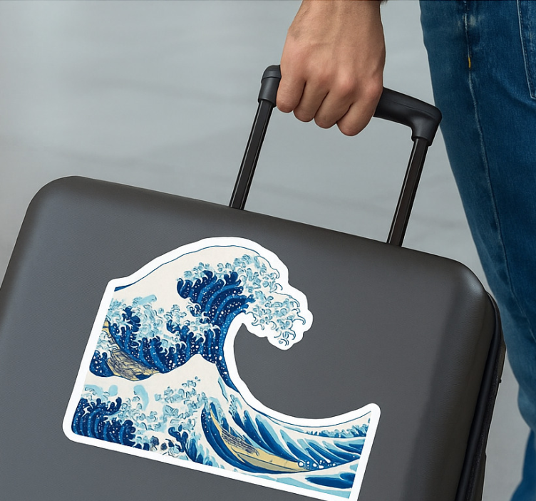 这幅艺术作品描绘了一股强大的海浪,令人联想到传统的日本艺术。旋转的动感捕捉了海洋的美丽与能量,而船只则在浪尖上航行。这个设计象征着自然的力量和探索的冒险,成为任何旅行装备的引人注目的补充。