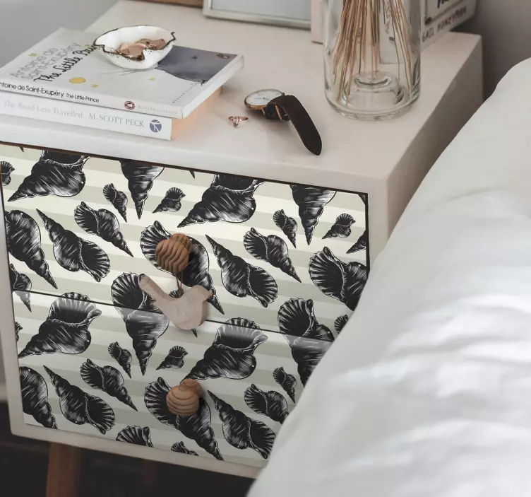 欢迎来到我们的动物贴画贝壳印花图案系列!这个独特的设计灵感来源于自然界中的优雅元素,每一片贴纸都展现了精美的贝壳和条纹图案,完美地融入了家具与家居装饰中。黑与白的搭配让整体设计显得更加高雅,适合任何风格的室内环境。无论是用于客厅、卧室还是办公室,这些贴纸都能为您的空间增添一份自然的魅力。