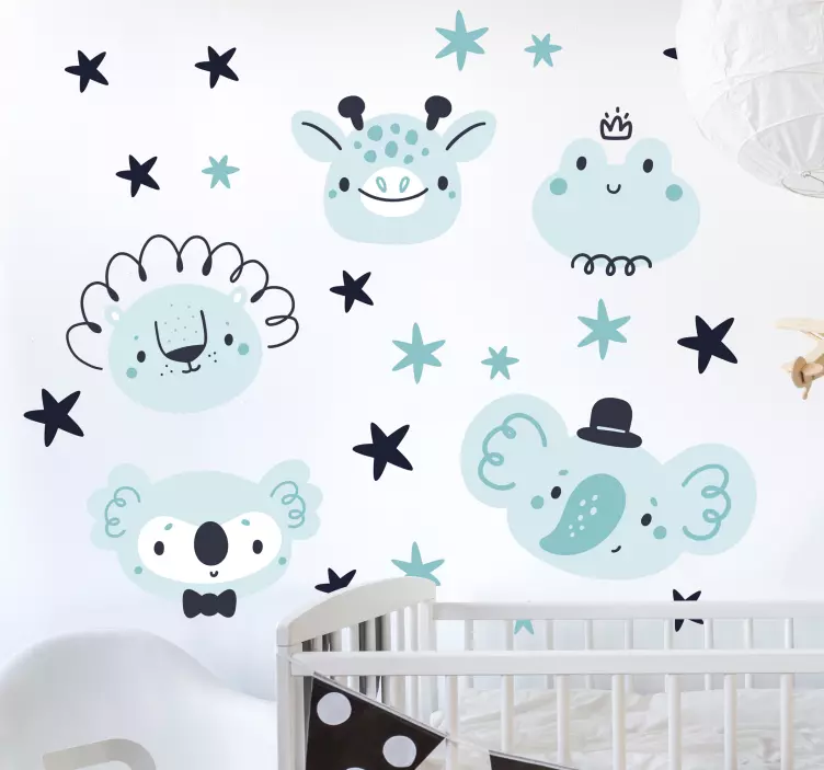 欢迎来到我们的动物贴画可爱动物面孔系列!这款设计灵感来源于北欧风格,展现出可爱的卡通动物面孔,色调明亮丰富,尤其是蓝色的底色与俏皮的星形图案相结合,给孩子们的房间增添了无限乐趣。每一款动物贴画都经过精心设计,旨在为您的空间带来活力与温馨。