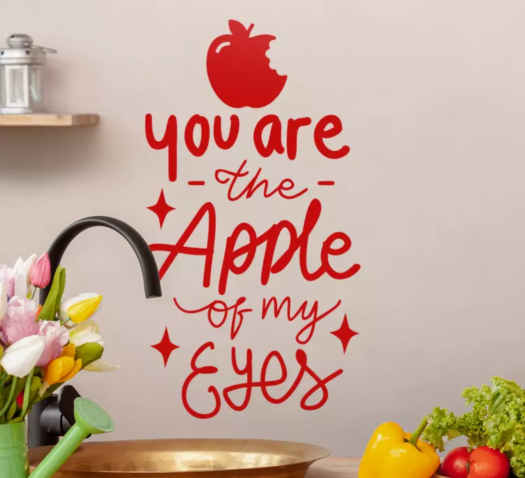 一句俏皮的话强调了情感,配有生动的苹果插图。文本创意地表达了亲密感,使其成为厨房装饰的愉快补充。此设计适合各种可定制的需求,为您的空间增添个人风格。