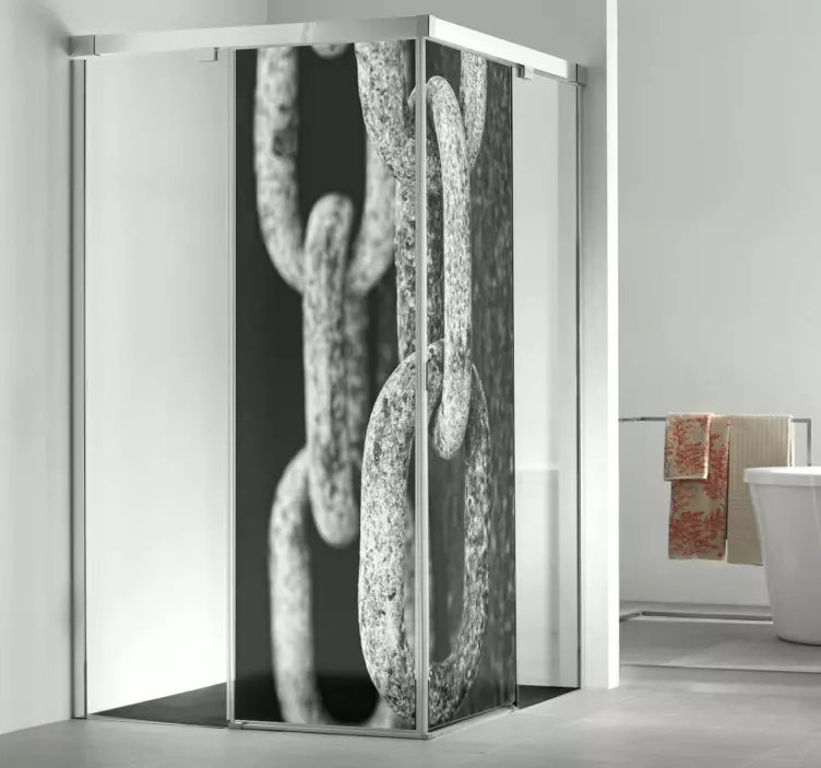 Transform your shower screen with artistic chain stickers featuring vintage chain photographs. These stickers add a unique touch to your bathroom, with delicate, contrasting, and grainy images that create a distinct ambiance. Customize the labels according to your desired space by contacting us in %year%.