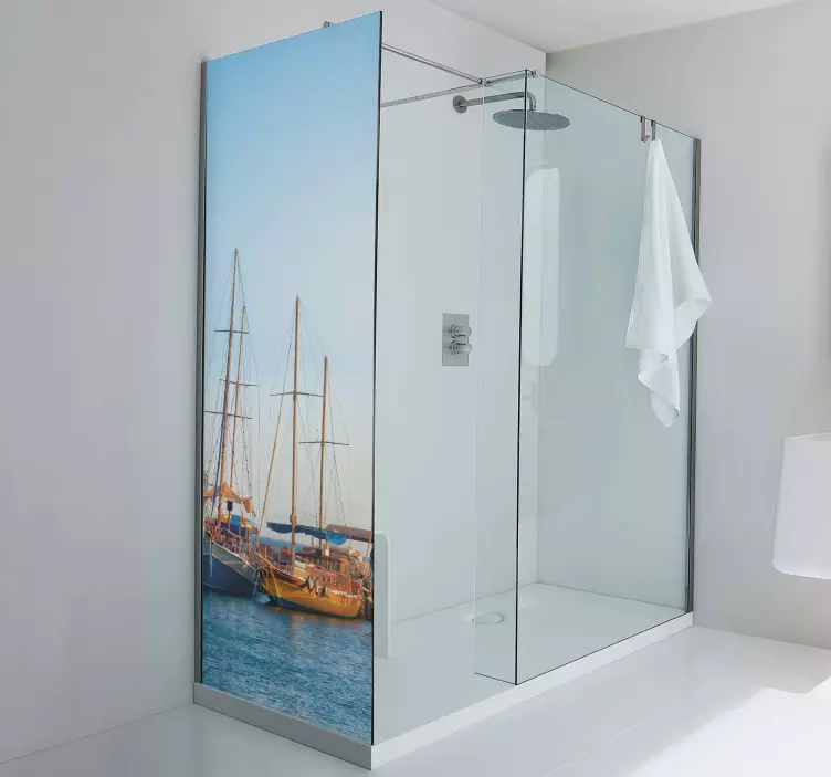这款淋浴贴纸帆船场景的设计灵感源于迷人的船只和宁静的海洋,展现了航行在水面上的帆船,仿佛在阳光下轻轻摇曳。码头的细节与背景中的港口相得益彰,营造出一种户外的惬意感。无论是在淋浴时还是在浴室中,这种设计都能让您感受到航海的乐趣和海洋的魅力,仿佛身临其境。