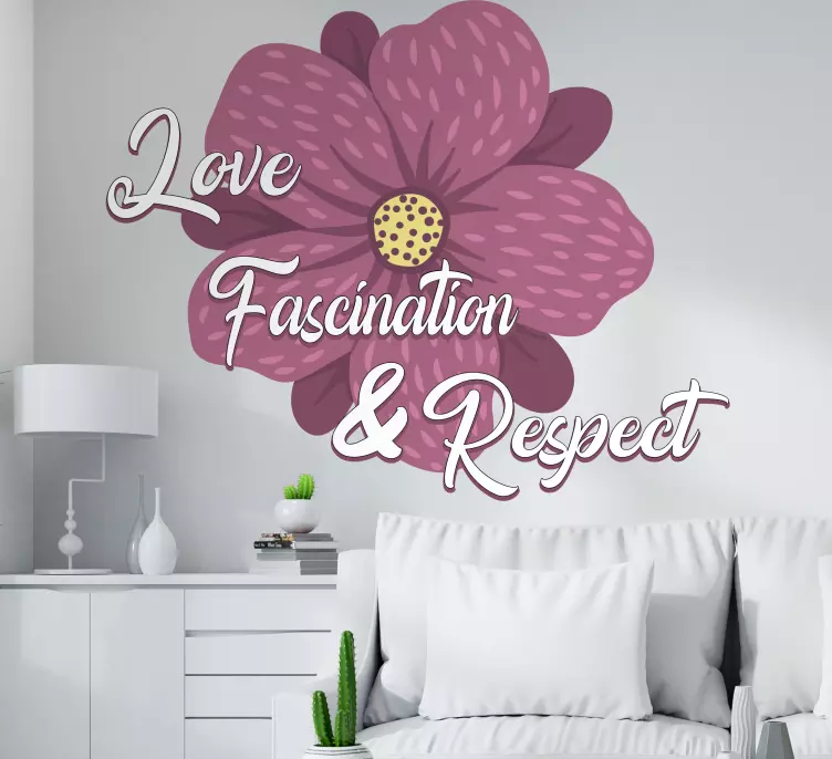 參考:: A48132这个设计展现了一朵美丽的花朵,以及一句表达爱、迷恋和尊重的真挚信息。粗体字和花卉元素营造出温馨的氛围,非常适合用来提升个人空间的积极肯定。