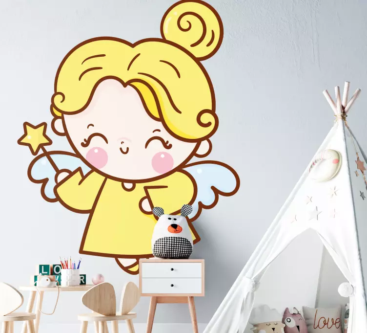 欢迎来到我们的动物贴画可爱天使角色的奇妙世界!这款贴画设计精美,展现了小天使和可爱动物的俏皮形象,带有黄色的仙女棍棒,笑容满面,充满了异想天开的魅力,特别适合儿童的房间装饰。无论是卧室还是游戏区,这款贴画都能为空间增添一份生动与趣味!