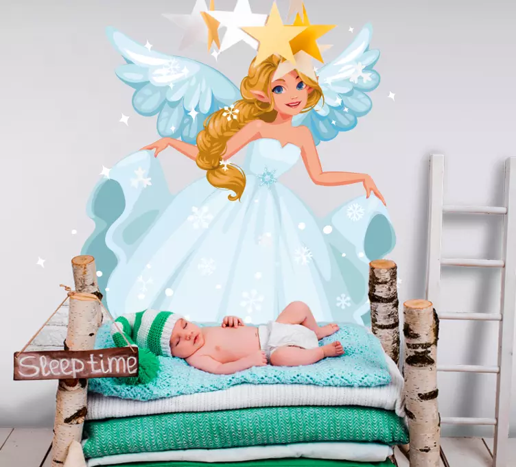 參考:: A51499一个迷人的仙女设计,展示了一个拥有优雅翅膀和美丽裙子的角色。非常适合儿童房间,这个奇幻的形象为任何空间增添了一丝魔法和幻想,唤起愉悦和想象的感觉。