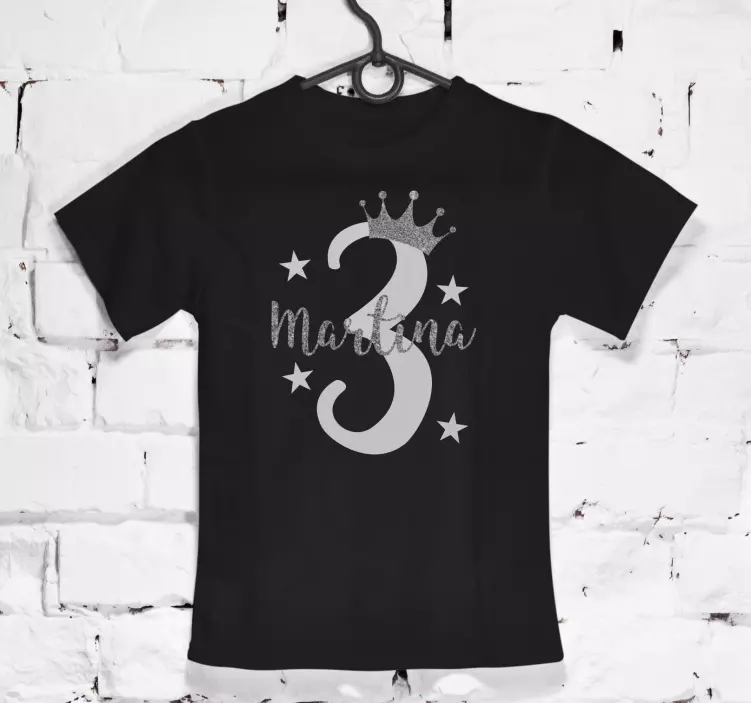 这套时尚的服装采用迷人的黑色设计,配有闪亮的皇冠和数字三。个性化内容包括名字“Martina”,非常适合生日庆祝活动。对于任何小朋友庆祝他们的特别日子来说,这是一个令人愉快的选择。