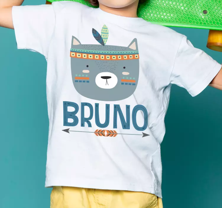 这个设计展示了一个可爱的熊脸,融入了部落元素,色彩鲜艳,并且带有个性化的名字。它散发出一种适合儿童的愉快氛围。整体构图引人入胜,视觉上也很吸引人,是年轻人理想的选择。