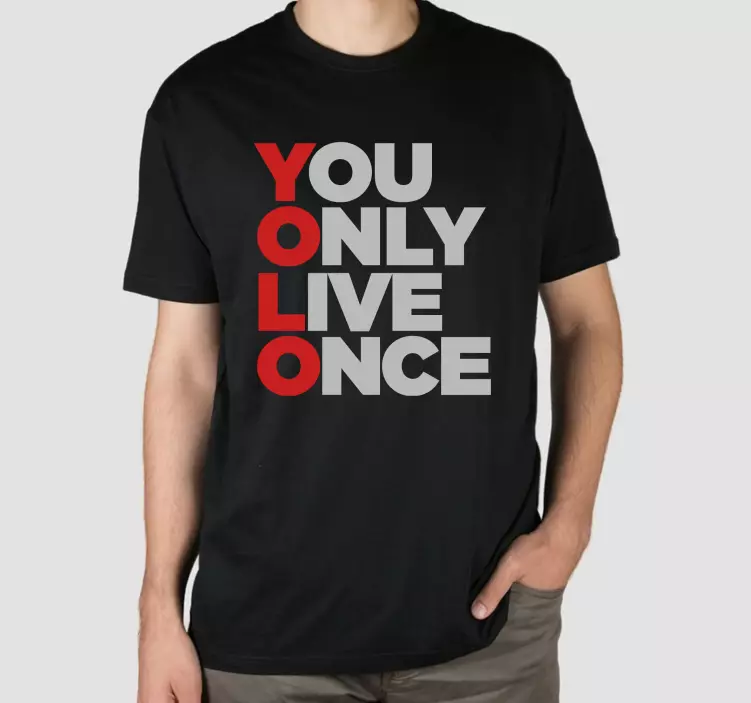 这款大胆的服装展示了具有影响力的短语 'You Only Live Once',强调了活出精彩人生的信息。设计采用了强烈的排版和对比色彩,使其引人注目,吸引那些渴望表达充满活力态度的人。