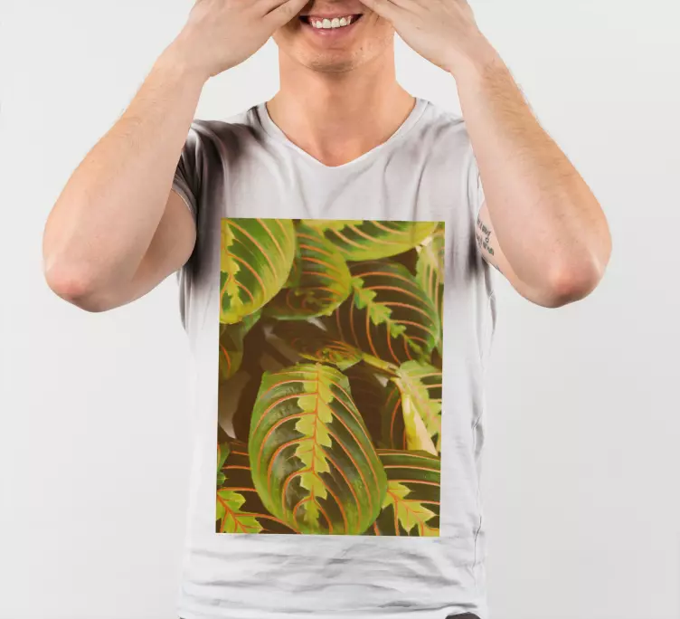 畅享热带丛林的气息,这款T恤衫绿色叶子图案的设计灵感来源于大自然,展现出马兰塔和各种植物的热带魅力。它充满活力的插图描绘了新鲜的绿色树叶,仿佛置身于异国情调的热带环境中。细腻的质地让你感受到自然的气息,是每个喜欢与自然亲密接触的人的完美选择。