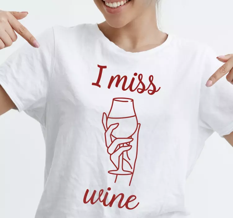 这幅图像展现了一个有趣而时尚的信息,表达了对葡萄酒的怀旧情感。设计中包含了一只优雅地绘制的手握着一个酒杯,配以俏皮的排版。非常适合休闲穿着,结合了幽默和时尚,吸引了葡萄酒爱好者。
