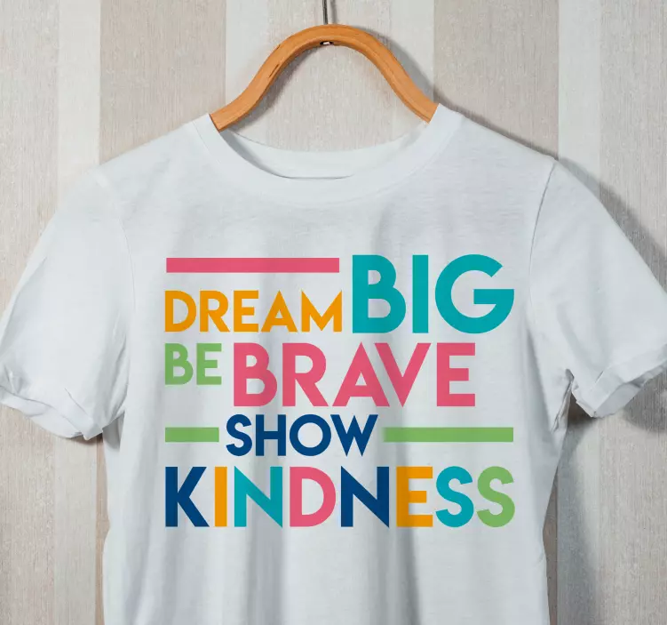 这款以善良启发他人的T恤衫将梦与勇敢相结合,展示了青春与积极的力量。它的设计富有励志的文本和丰富多彩的图案,令人振奋,让每一个穿着它的人都能感受到正能量。这款多色的T恤衫不仅是一件服饰,更是一种生活态度,鼓励你在日常生活中传播善良与爱。