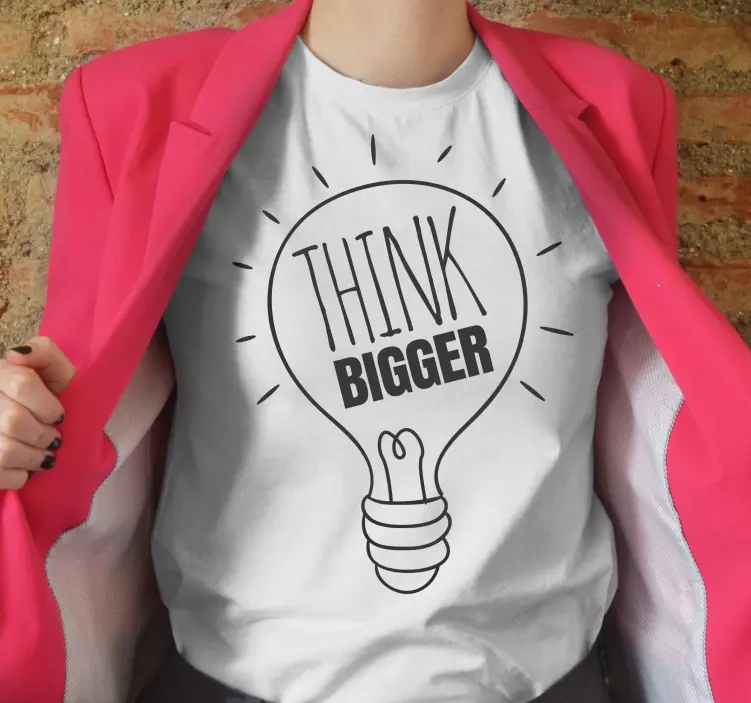 这个设计展示了一个灯泡,旁边有粗体字的短语'Think Bigger'。这个画面唤起了灵感和积极思考的感觉,使用简单却有力的视觉元素,与激励主题产生共鸣。