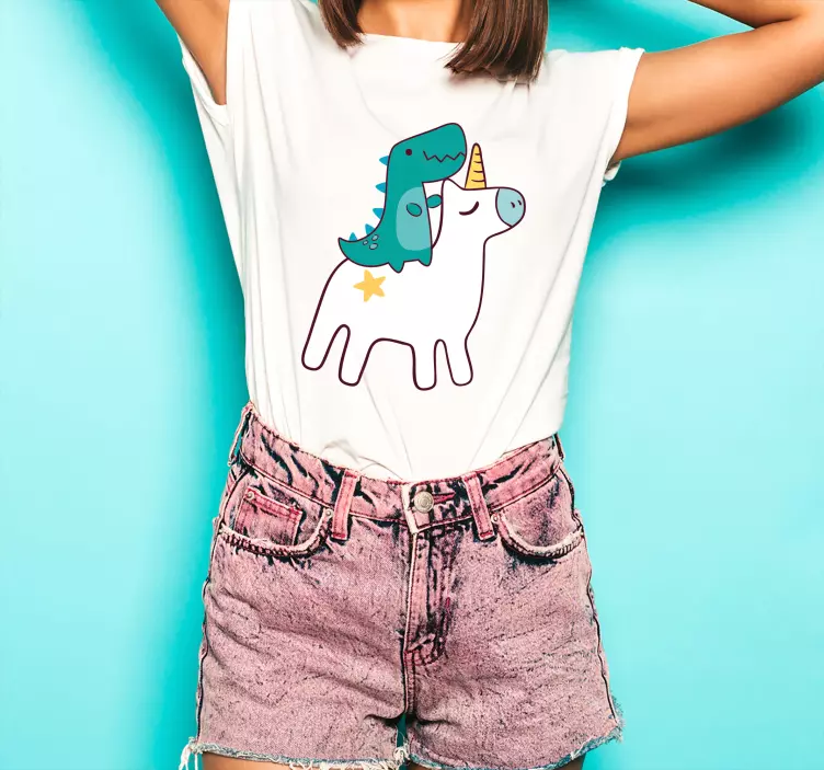 独角兽和恐龙卡通设计 t 恤