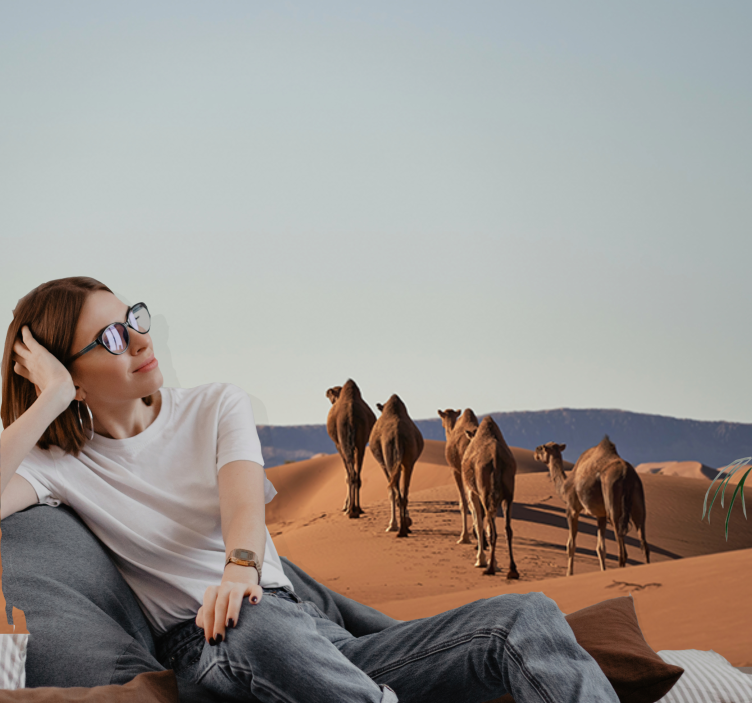 使用沙漠照片墙中的骆驼风情,您只需简单地将其用胶水涂抹在墙壁上。配合滚筒、刷子等工具,您就能轻松实现专业的装饰效果。无论是新装修还是旧墙翻新,这款壁画都能轻松适应,令您的空间焕然一新。