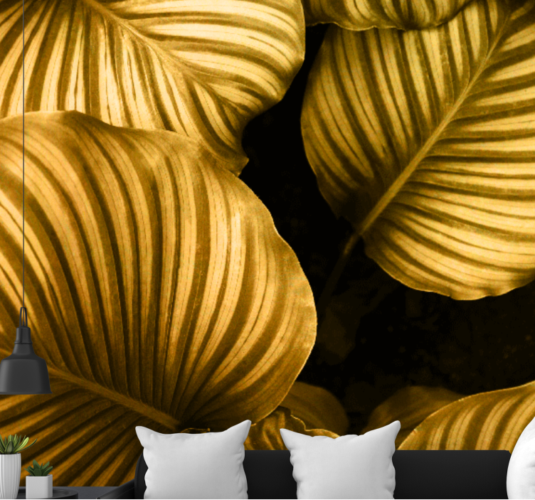 欢迎来到我们的其他花卉壁画金色叶子图案的世界!这款独特设计的壁画展现了自然的美丽,融合了热带风情与金色叶子的质感,为您的空间增添一抹生机。设计中的树叶仿佛在诉说着大自然的故事,每一片叶子都生动而真实,宛如置身于热带雨林。