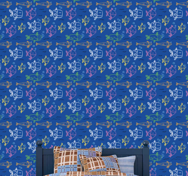 參考:: P3317这款令人惊叹的海底派对深蓝色儿童壁纸将成为卧室空间的绝妙作品,也适用于户外空间。